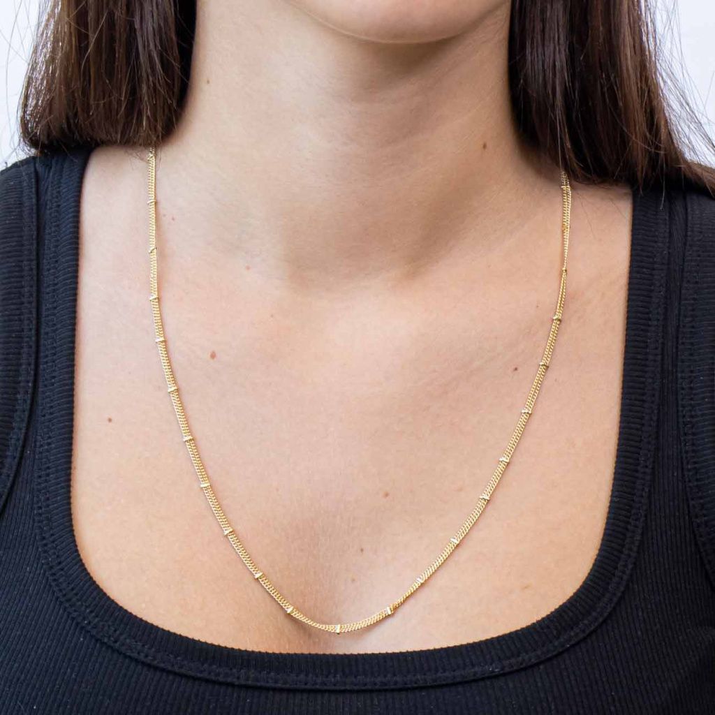 Skvěle vynikne samostatně jako dominantní doplněk, ale můžete ho kombinovat i s kratšími řetízky pro moderní vrstvený vzhled.