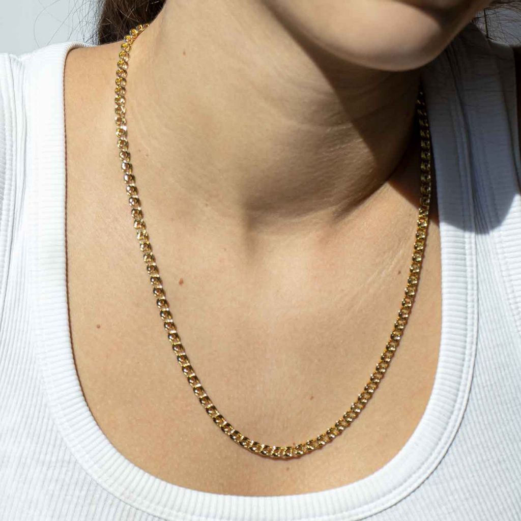 Řetízek můžete nosit samostatně jako dominantní prvek, nebo ho kombinovat s jemnějšími řetízky pro stylový vrstvený efekt.
