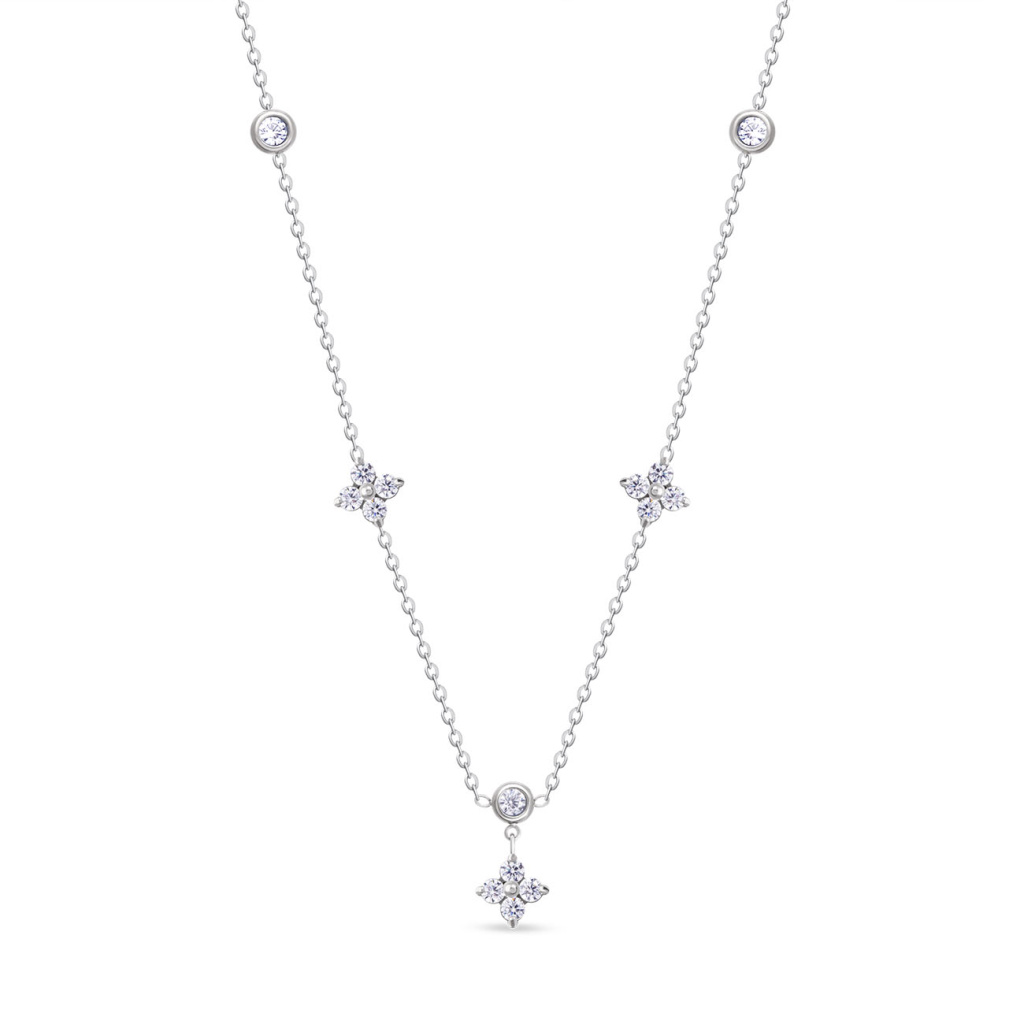 Jemný náhrdelník z chirurgické oceli s květinovými zirkony. Nastavitelná délka, zářivý a nadčasový doplněk pro každý den.