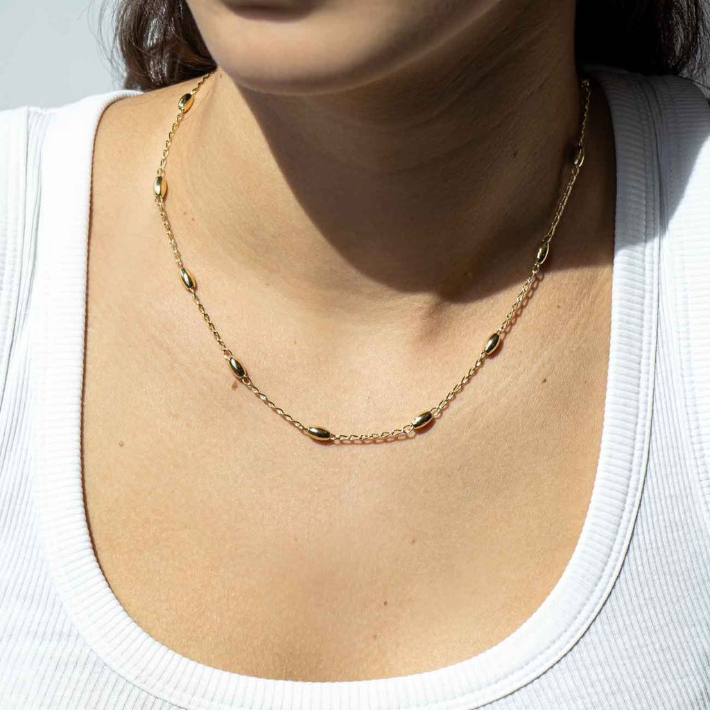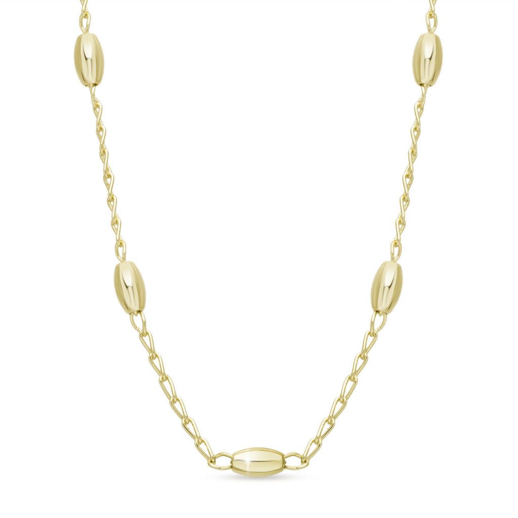 Tento jemný řetízek okouzlí svou lehkostí a precizním zpracováním detailů. Oválné prvky dodávají šperku zářivý a elegantní vzhled, který působí nadčasově a velmi ženským dojmem.