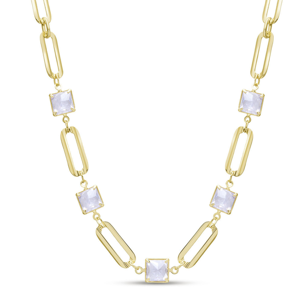 Zářivý řetízek z rhodiovaného kovu s pozlacením 14K a zirkony. Nadčasový, výrazný a elegantní doplněk ke každému outfitu.