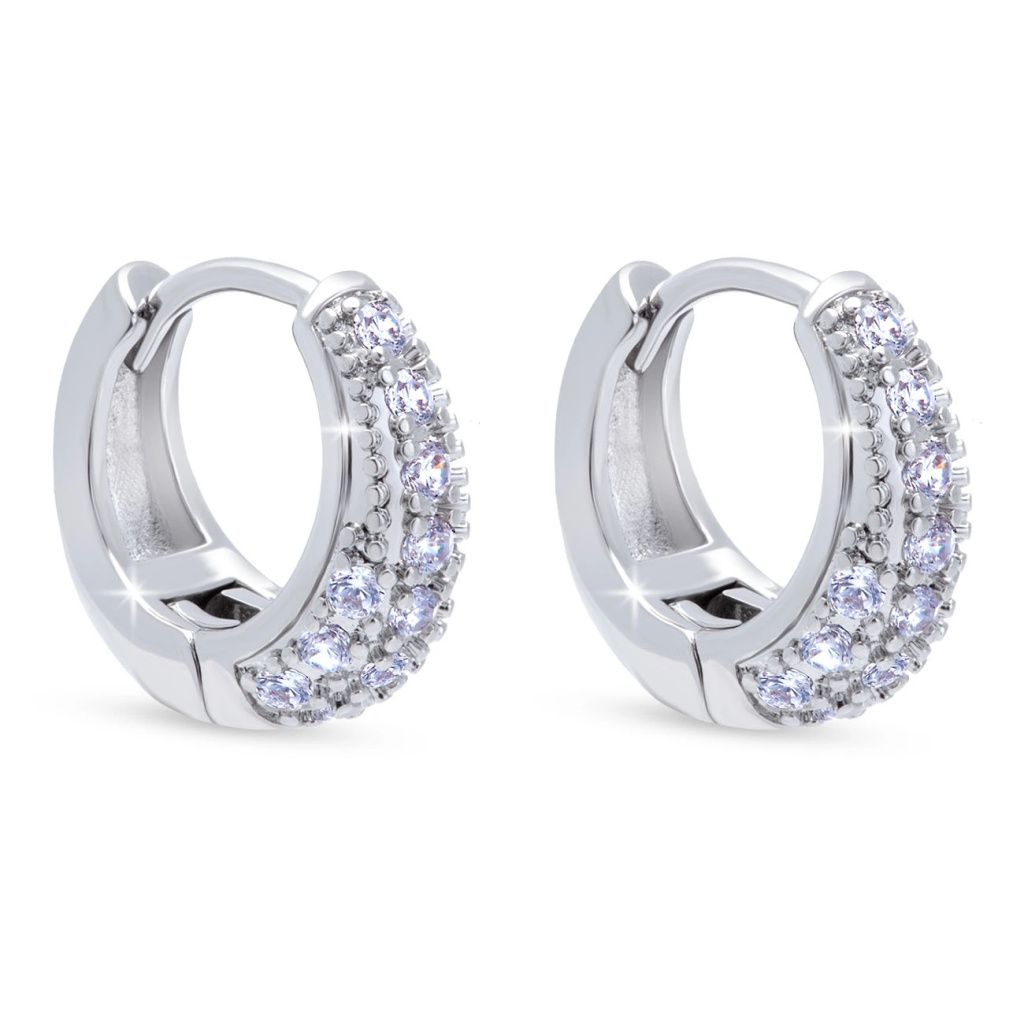 Tyto náušnice vynikají svou jemnou, ale zároveň výraznou linií zdobenou třpytivými zirkony, které zachycují světlo z každého úhlu. Precizní provedení a nadčasový design z nich dělají elegantní doplněk pro každodenní nošení i slavnostní chvíle. Díky svému zářivému efektu podtrhnou Vaši přirozenou krásu.
