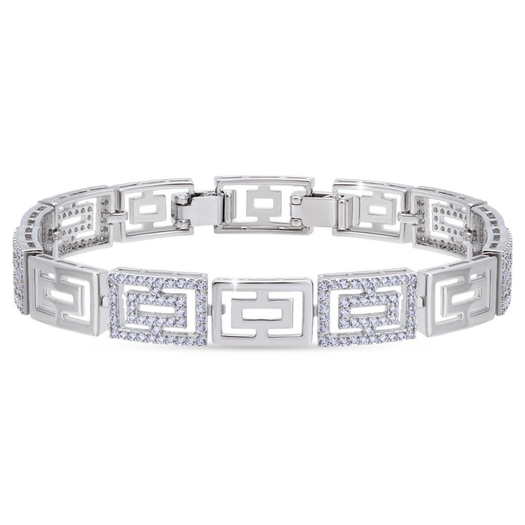 Rhodiovaný náramek s řeckým vzorem a zirkony 3221