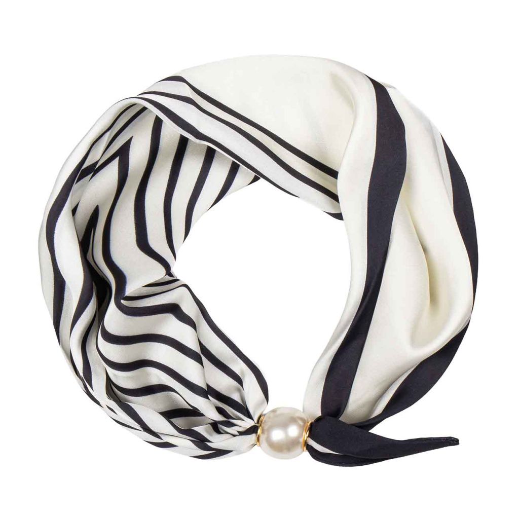 Nadčasový hedvábný šátek s magnetickou sponou – elegantní proužky