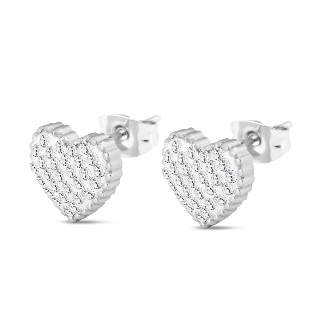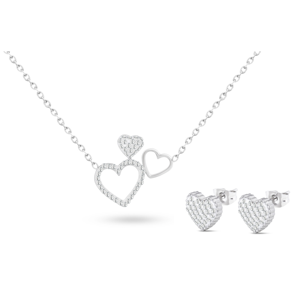 VERONA 246 Set z chirurgické oceli, srdce zdobené zirkony, řetízek + náušnice 246 Ellami