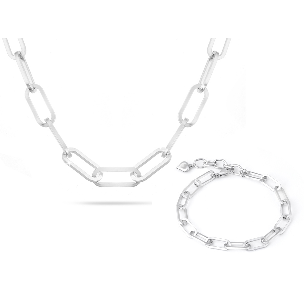 VERONA 104 Set z chirurgické oceli hrubý, řetízek + náramek s přívěskem srdce 104 Ellami