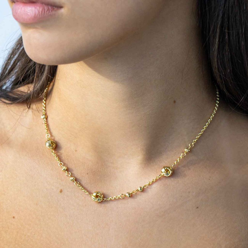 Objevte zářivý šperk, který v sobě spojuje jemnost i výrazný detail. Tento nadčasový řetízek zdobený precizně zpracovanými uzly a kuličkami působí elegantně a zároveň originálně. Skvěle doplní Váš každodenní styl i slavnostní outfit.