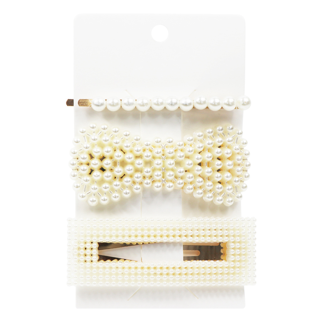 Sponky do vlasů s bílými perličkami 3357-28, zlaté barvy - 3 ks 8000776