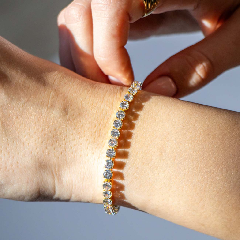 Precizně vsazené zirkony v pravidelné linii vytvářejí elegantní a nadčasový design, který rozzáří každý pohyb Vaší ruky. Jemný, ale výrazný třpyt dodává šperku luxusní charakter a činí z něj ideální doplněk pro slavnostní i každodenní nošení. Tento náramek je symbolem vytříbeného vkusu a ženské elegance.