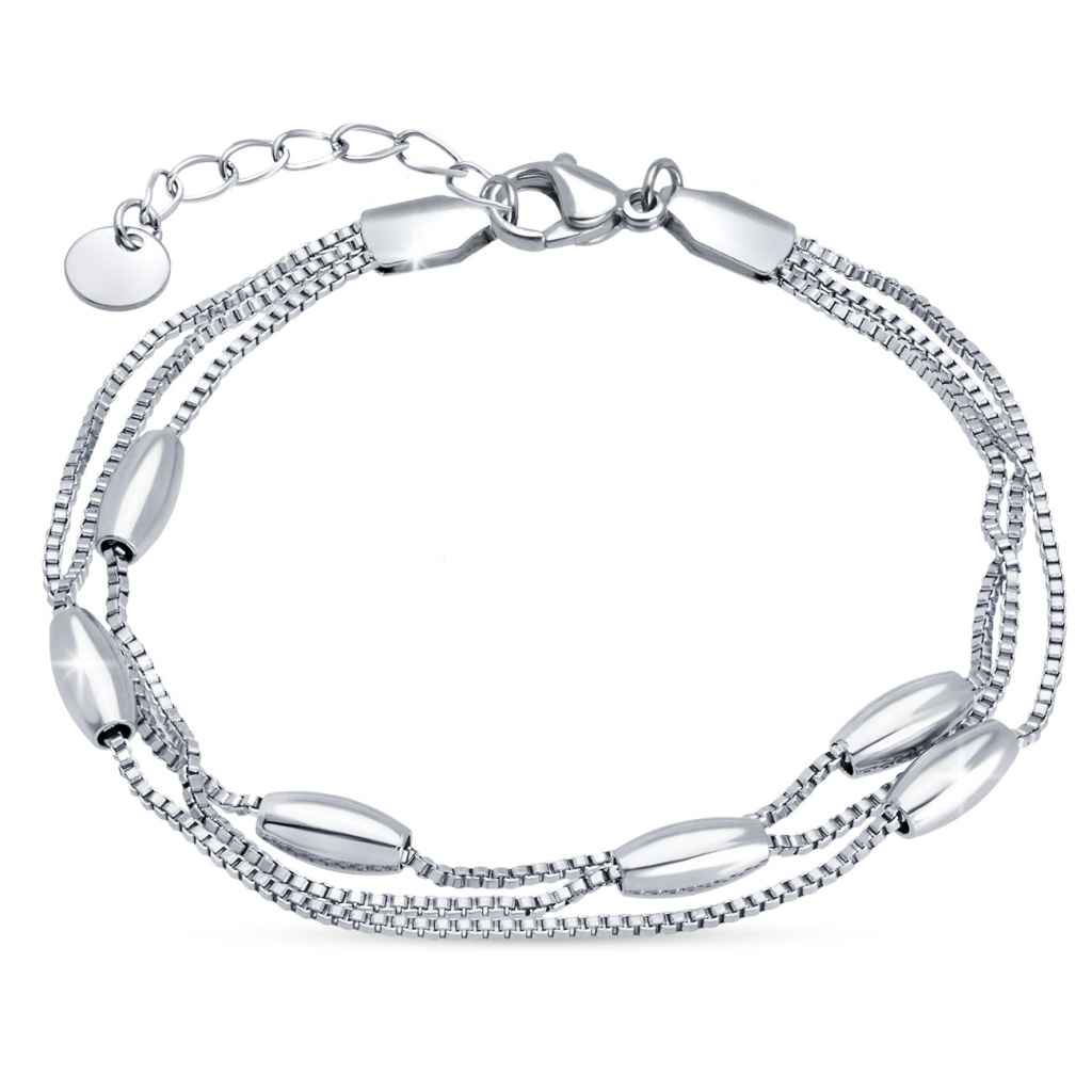 Víceřadý náramek z chirurgické oceli s oválky. Délka 17 + 3 cm, elegantní a nadčasový design pro každodenní nošení.
