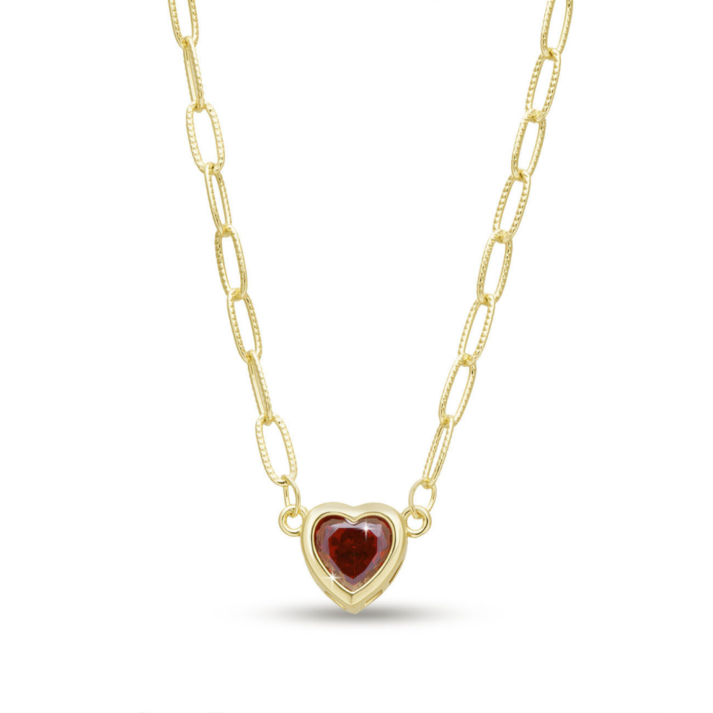 Výrazný pozlacený řetízek s efektním oválkovým článkováním nese v centru jemný přívěsek ve tvaru srdce s červeným zirkonem. Elegantní kombinace ženského motivu a moderního designu dělá z tohoto šperku ideální volbu pro každodenní nošení i výjimečné příležitosti. Díky nastavitelnému prodloužení snadno přizpůsobíte délku dle outfitu či nálady.