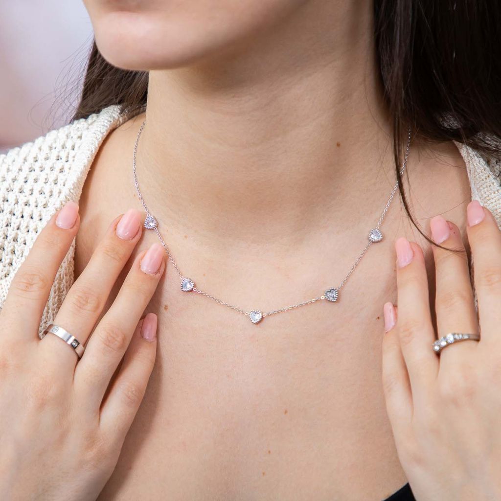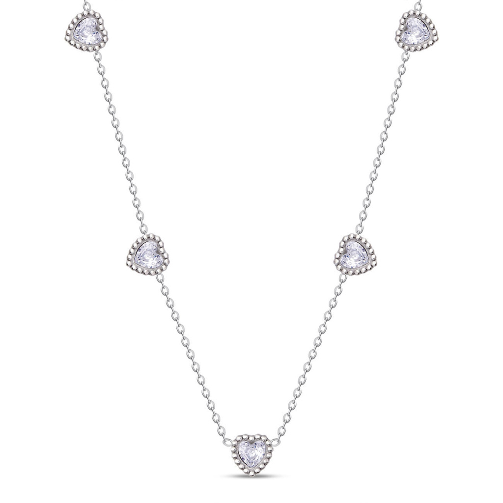 Jemný a přesto výrazný šperk, který podtrhne Vaši ženskost s lehkostí a elegancí. Precizně zpracovaná srdíčka dodávají náhrdelníku zářivý detail, jenž zaujme při každém pohybu. Nadčasový design z něj činí ideální doplněk pro každodenní nošení i slavnostní příležitosti.