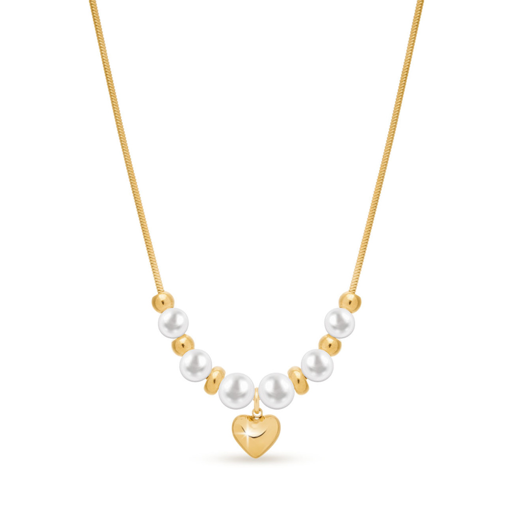 Pozlacený náhrdelník z chirurgické oceli 14K s perličkami a srdíčkem. Délka 41 + 5 cm, jemný a nadčasový design.