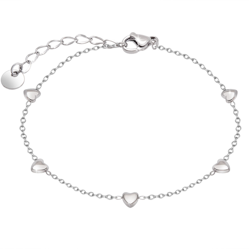 Jemný náramek se srdíčky z chirurgické oceli. Délka 16 + 3 cm, minimalistický design, zapínání na karabinku. Nadčasový šperk pro každý den.