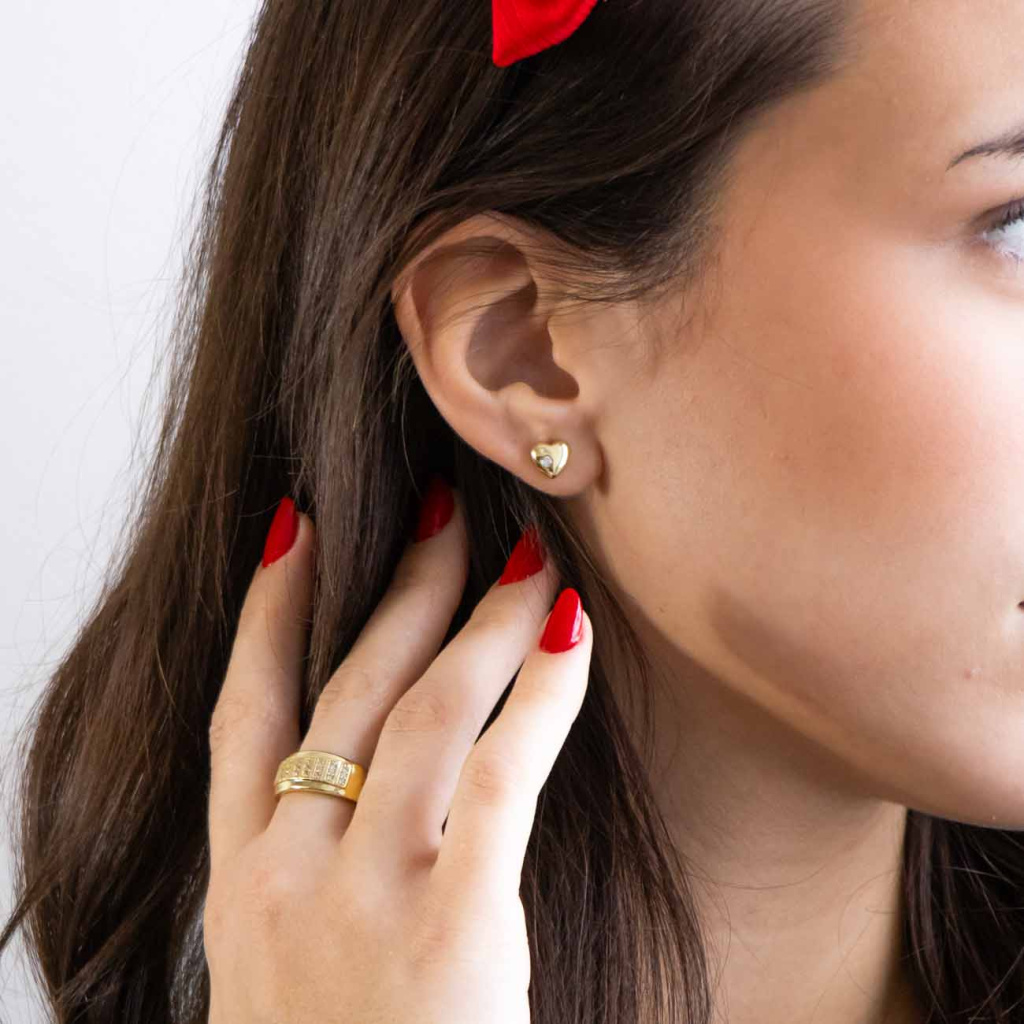 Romantické náušnice ve tvaru srdíčka s jemně vsazeným zirkonem září decentním leskem a potěší každou milovnici něžných šperků. Minimalistický design se skvěle hodí pro každodenní nošení i jako milý dárek.