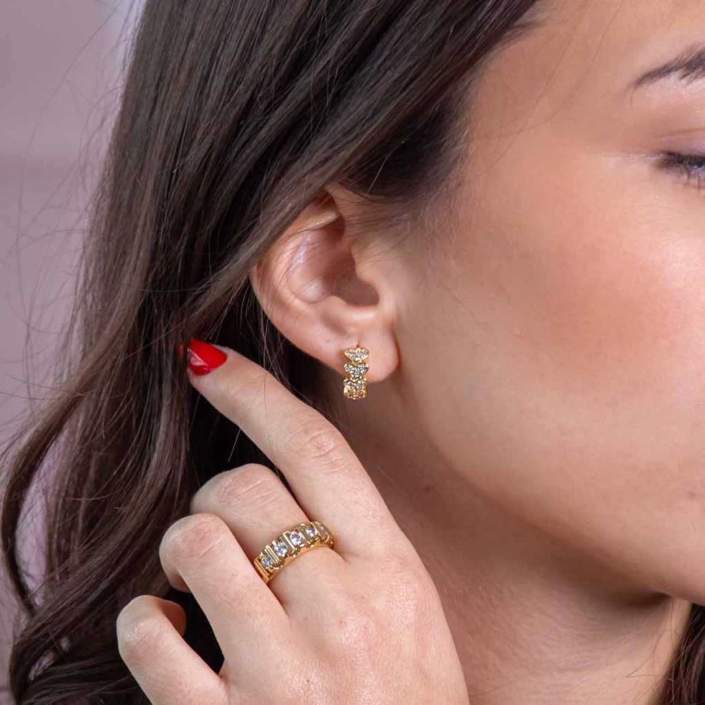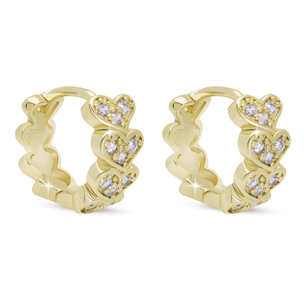 Roztomilý design těchto náušnic kombinuje jemně tvarovaná srdíčka a třpytivé zirkony, které jim dodávají oslnivý lesk. Elegantní kruhový tvar s romantickým nádechem se hodí jak pro všední dny, tak pro slavnostní příležitosti.