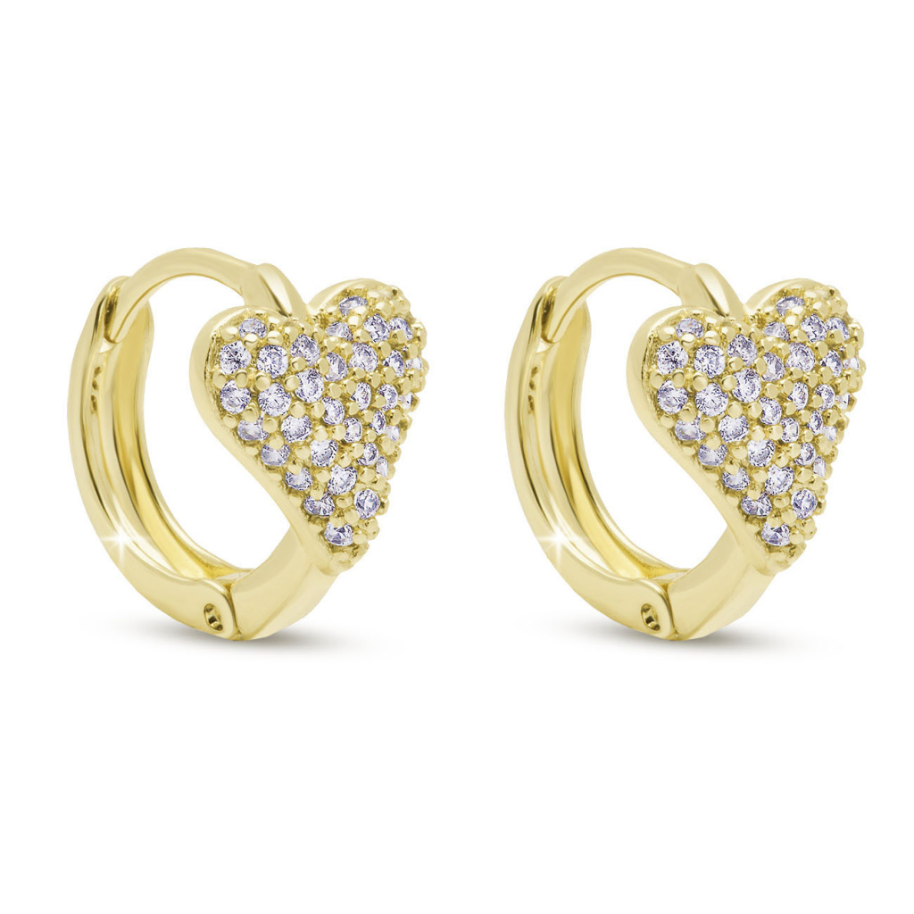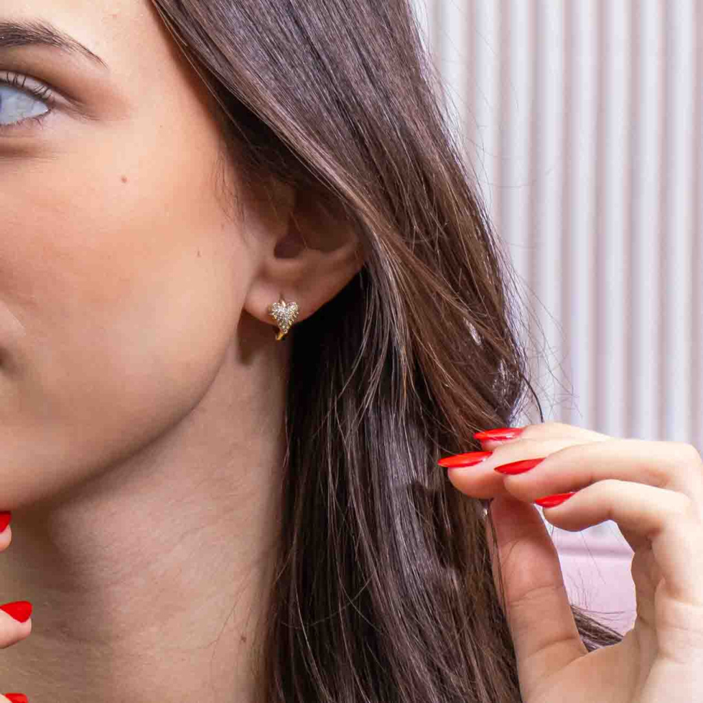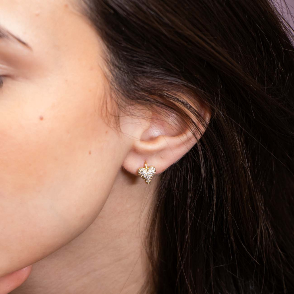 Elegantní náušnice ve tvaru kroužků zdobené drobnými srdíčky osazenými čirými zirkony přinášejí něžný lesk a hravý půvab. Jemný motiv srdce dodává šperku romantický nádech, zatímco praktické kloubové zapínání zajišťuje pohodlné nošení po celý den. Ideální pro každodenní nošení i jako milý dárek.