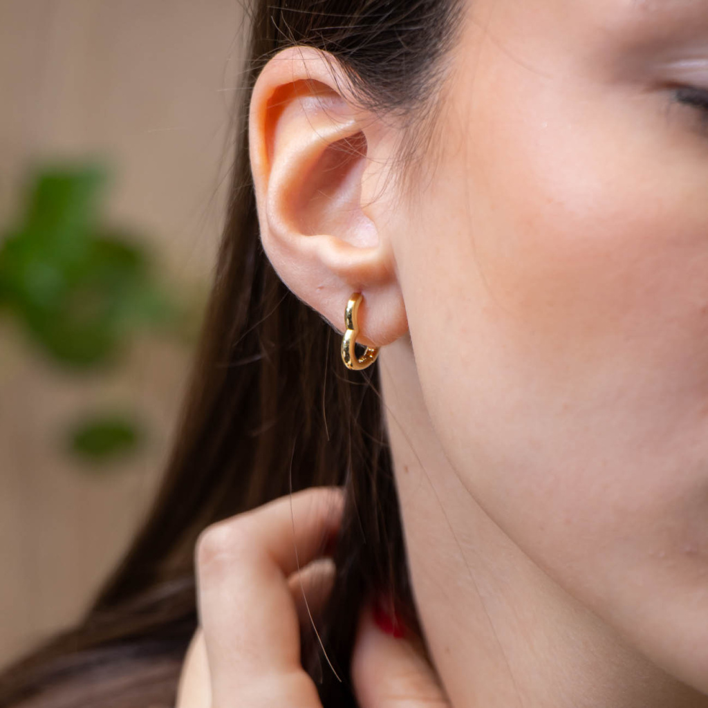 Elegantní pozlacené náušnice s jemně zaobleným tvarem připomínajícím srdce, které skvěle doplní každý outfit. Lesklý povrch a čisté linie dělají z tohoto šperku nadčasový doplněk pro každodenní nošení i speciální příležitosti.