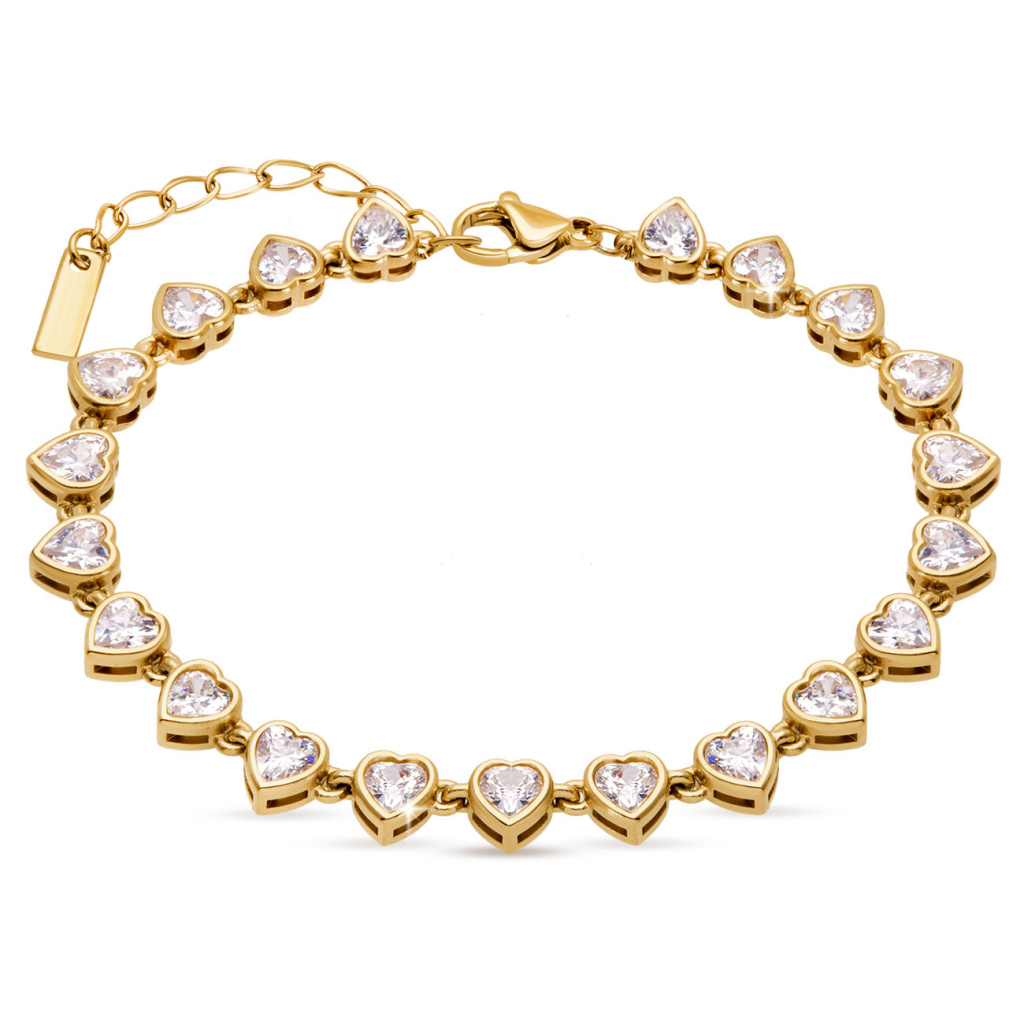 VERONA Náramek zirkonové srdíčka ch.ocel pozlacený