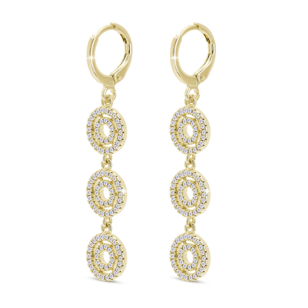 Pozlacené náušnice 14k zlatem s třemi kruhy spojenými očky . Kruhy jsou vykládány zirkony. Decentně doladí každý outfit a přitom nepotlačí ostatní módní doplňky. Navíc s nimi budete vždy působit jemně a upraveně.