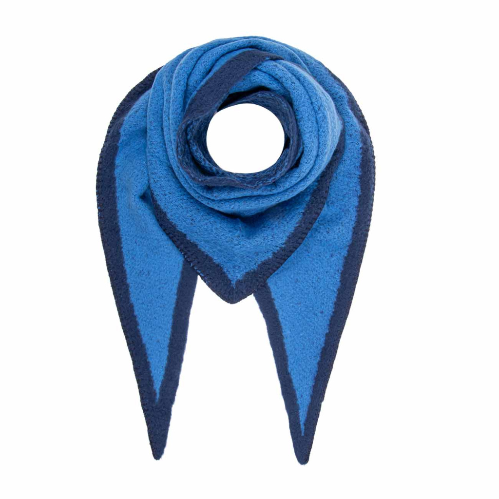 Stylový zimní trojúhelníkový šátek v elegantní kombinaci modré barvy dodá každému outfitu moderní a výrazný akcent. Díky jemné a hřejivé pletenině je ideální do chladnějších dnů a příjemně se nosí po celý den. Jedna strana šátku odpovídá provedení na první fotografii, zatímco druhá má barevnost dle detailu na druhém obrázku.